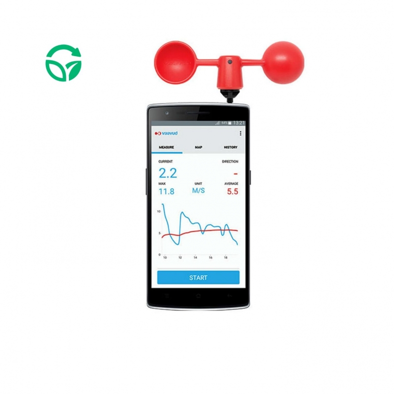 Este anemómetro está diseñado para mostrarnos la velocidad del viento, gracias a dos cazoletas giratorias y un sistema magnético interno, que comunica directamente con tu dispositivo. Su diseño lo convierte en un dispositivo ágil y robusto.